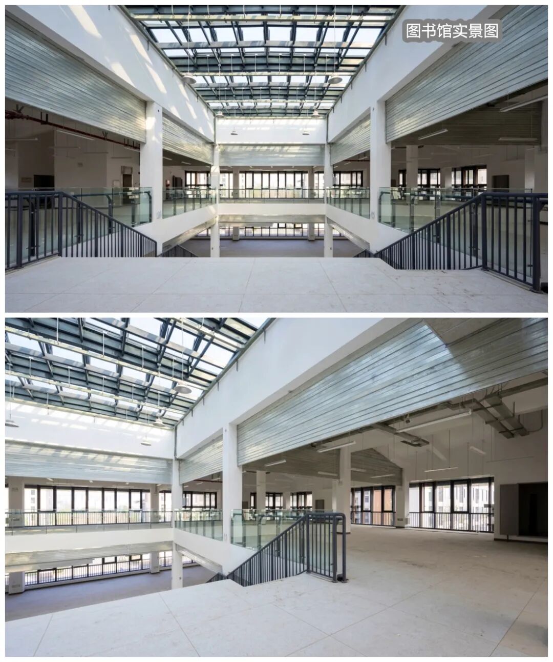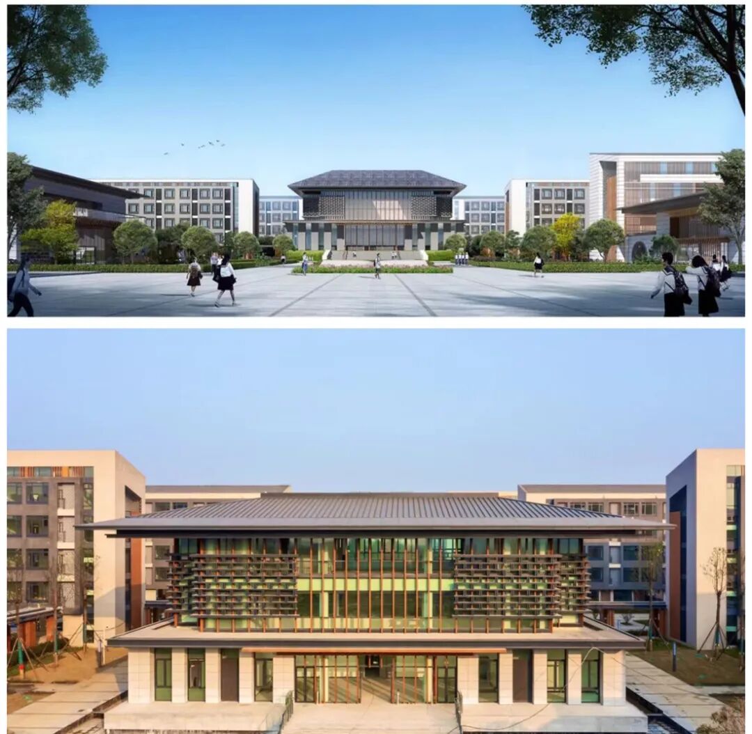 ➥九峰书院图书馆效果图(上)和实景图(下)
