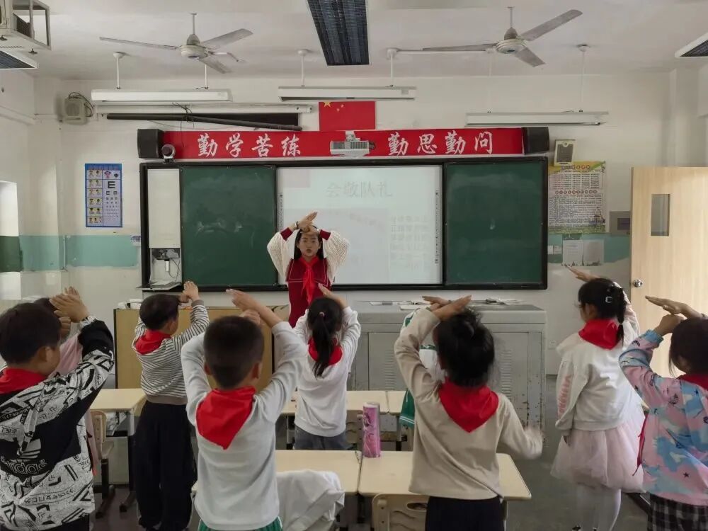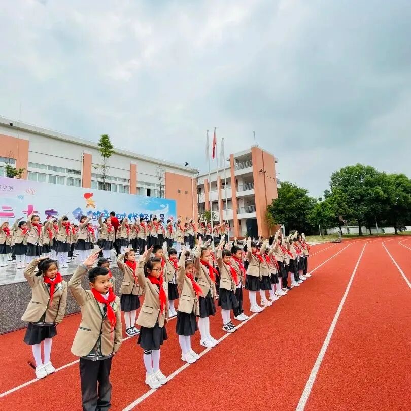 蔚蓝的天空下,火红的队旗高高飘扬,指引我们前进的方向,鲜红的红领巾系着梦想,引领我们扬帆起航。伴着初夏明媚的阳光,又一批新队员戴上红领巾,光荣地加入了中国少年先锋队!他们精神饱满,志气昂扬,向时代昭示着少年不负韶华、踔厉奋发的决心和勇气。