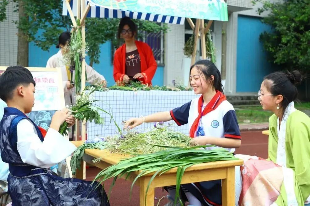 游园体验区,“消费者”亮出集章卡,在乐在其“粽”,浓妆“蛋”抹,香囊DIY,艾草花束,五彩绳结等项目中来回穿梭,在参与制作的过程中感受劳动的快乐,体验节日的习俗。