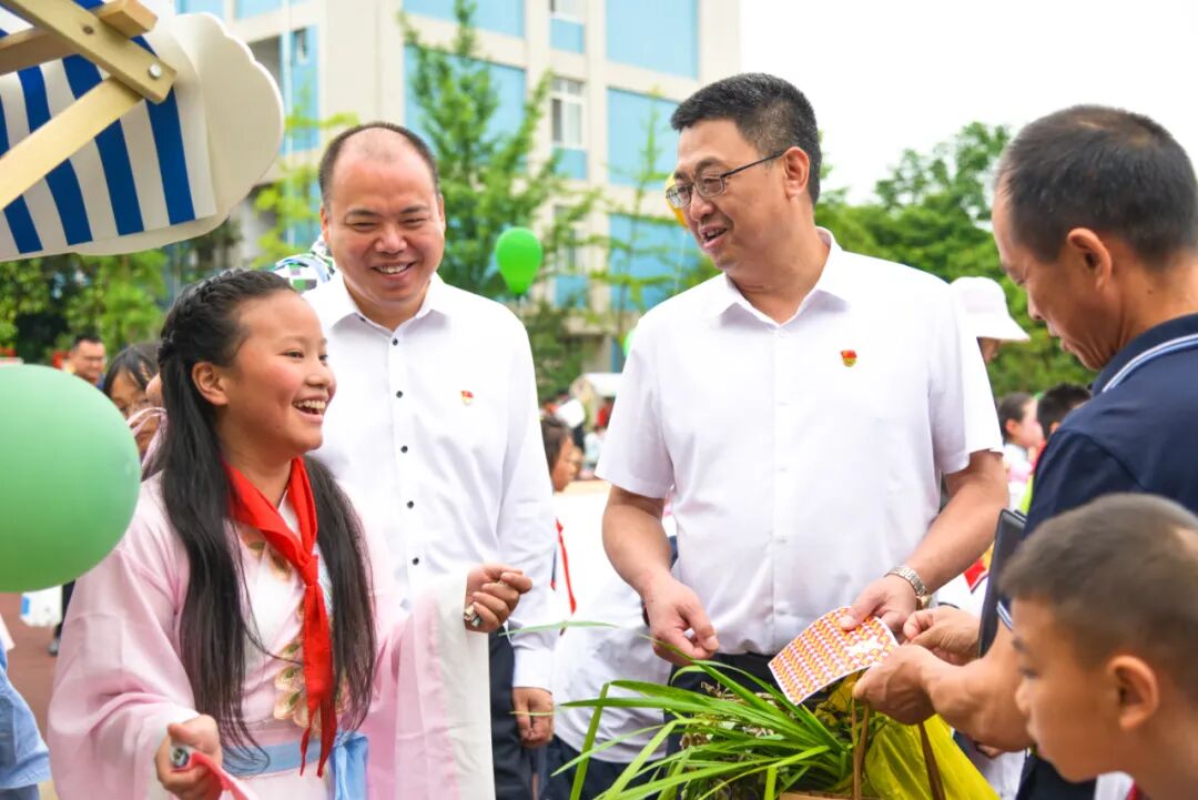 成都市教育局德育与宣传教育处处长杨忠斌,成都市教科院劳动教育教研员肖慧,彭州市委教育工委书记、市教育局党组书记、局长曾正泽,市教育局党组成员、副局长谢毅,市教育局党组成员、副局长杨晓勇以及市教育局相关科室同志,市教育与研究培训中心、市教育学会相关负责同志,各中小学、幼儿园德育与劳动教育分管负责同志,彭州市通济蓝天小学全体师生以及部分学生家长代表800余人参加了活动。