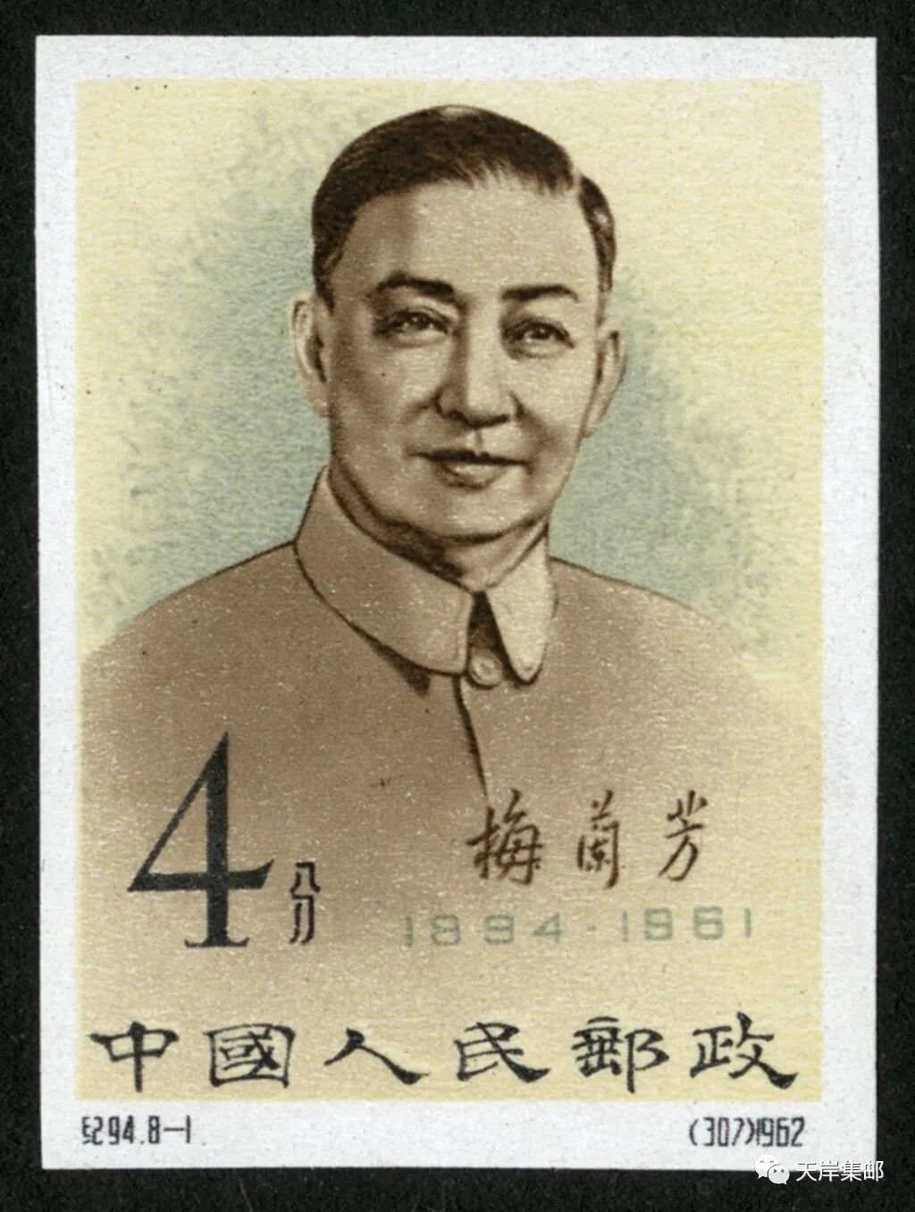 为了纪念杰出的戏曲艺术家梅兰芳,中华人民共和国邮电部于1962年8月8日和1962年9月1日发行志号为纪94的《梅兰芳舞台艺术》纪念邮票。邮票分有齿和无齿两种。在发行这套邮票之后,邮电部还发行了一枚小型张。