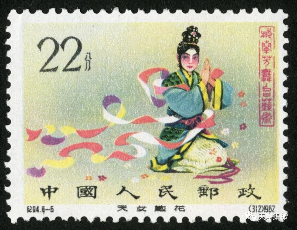 《天女散花》(312),图案是梅兰芳在《天女散花》中饰演天女的形象;