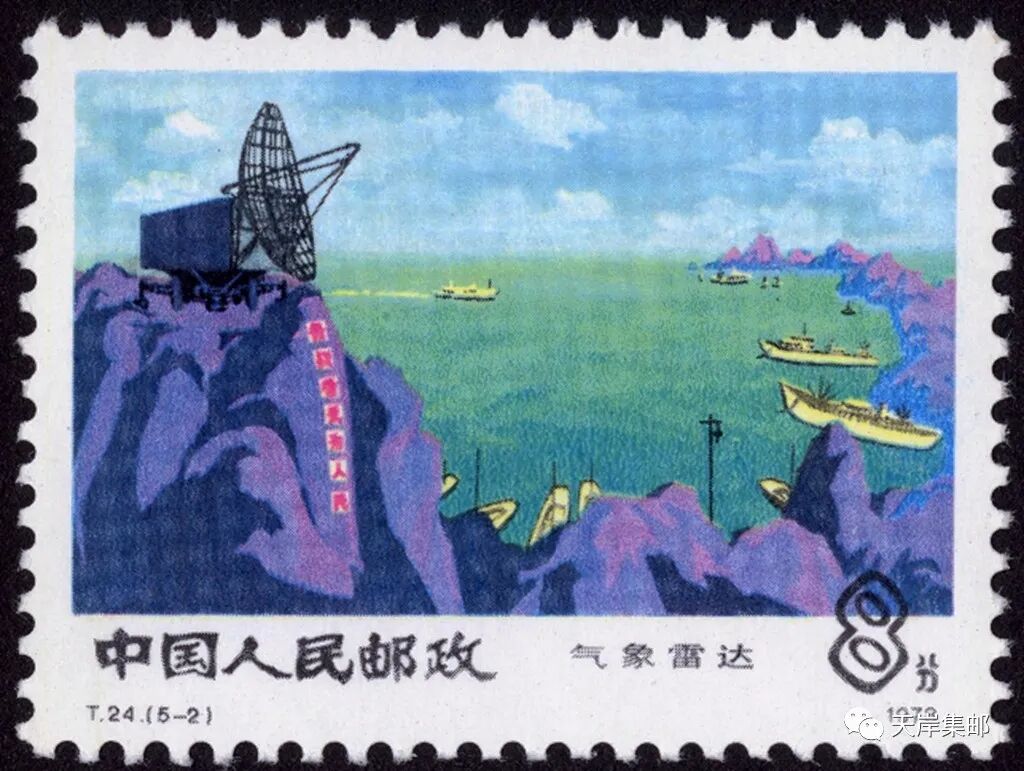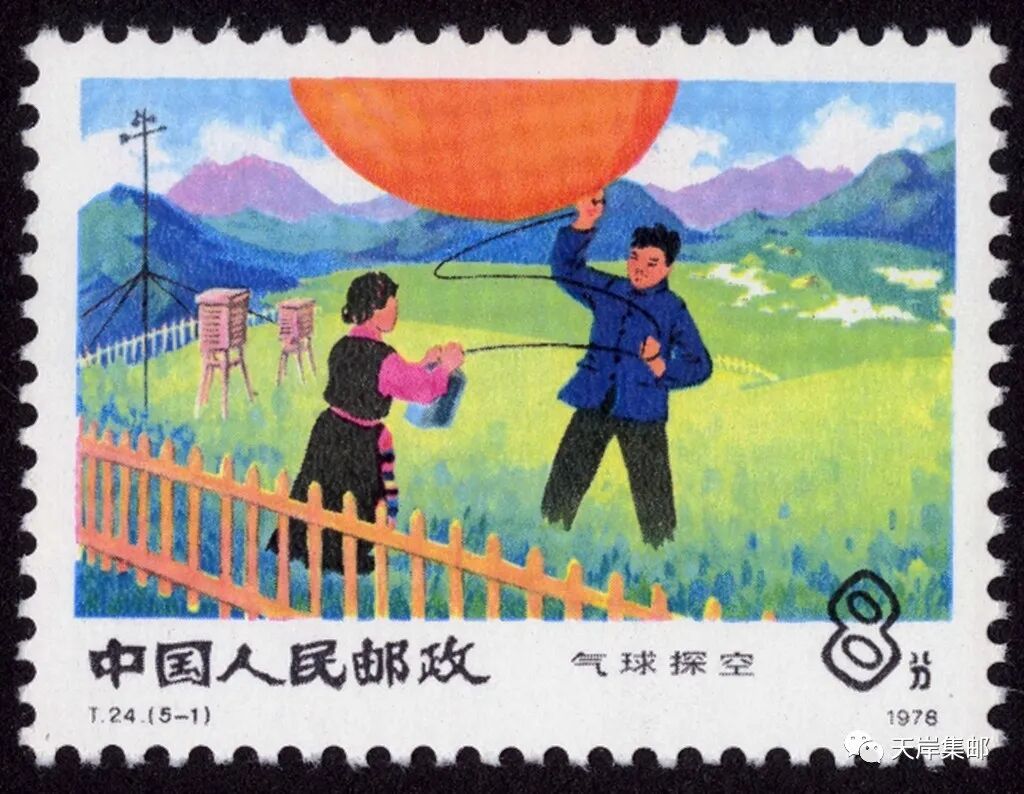 1978年4月25日,为了宣传中国气象事业取得的成绩,邮电部发行一套志号为T24的《气象》特种邮票,全套5枚。图名分别为:气球探空、气象雷达、天气预报 、气象哨组、人工消雹。