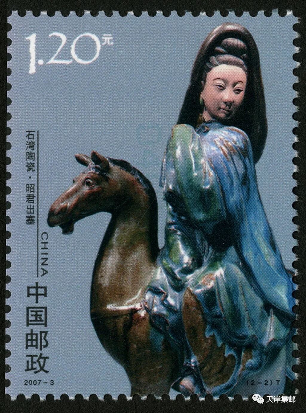2007年2月3日,国家邮政局发行《石湾陶瓷》特种邮票一套2枚及小版张1版,2枚邮票分别采用一代陶艺名师潘玉书的作品《踏雪寻梅》和《昭君出塞》。作品运用摄影艺术创作,素材的剪裁构图和光影处理一如既往地出色,很好地表现了作品中人物的神韵和还原了陶瓷的釉色。