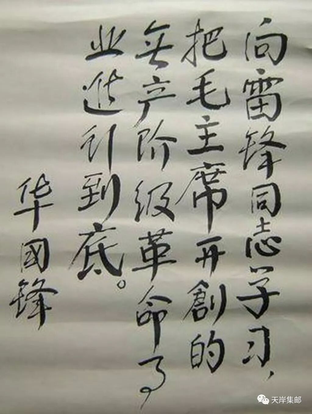 华国锋同志亲笔题词:向雷锋同志学习,把毛主席开创的无产阶级革命事业进行到底。