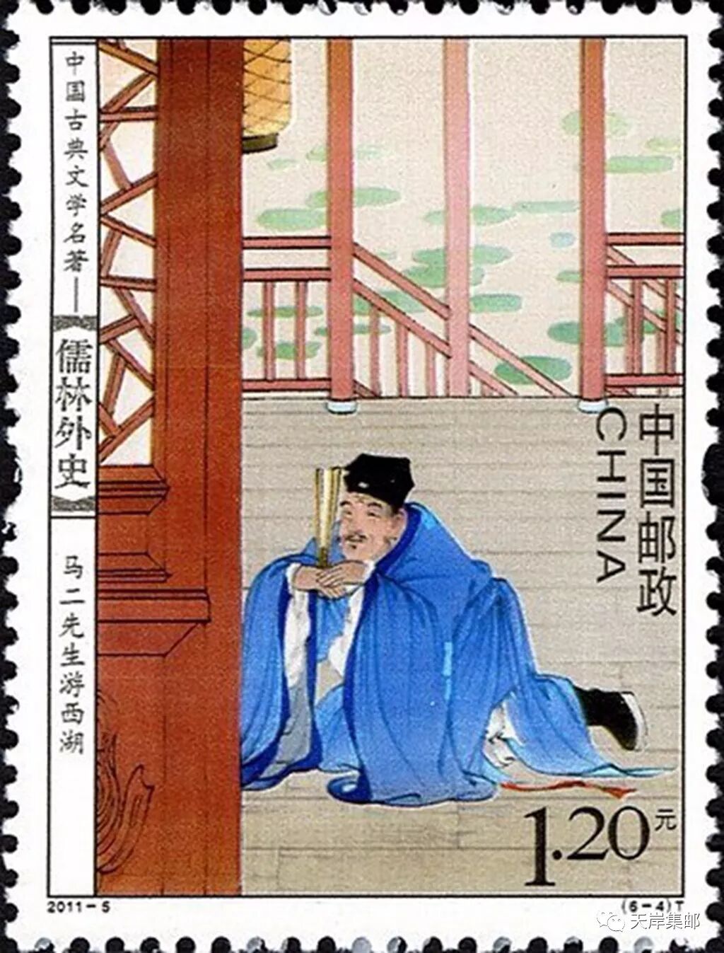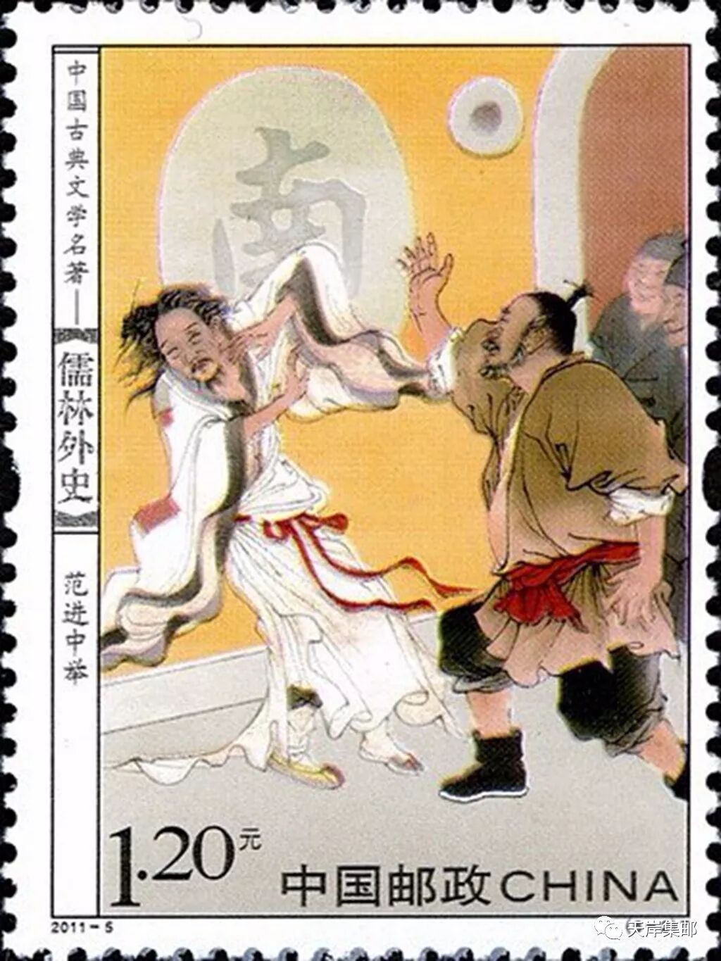 2011年是《儒林外史》作者吴敬梓诞辰310周年。中国邮政定于2011年3月21日发行志号为2011—5的《中国古典文学名著——<儒林外史>》特种邮票1套6枚。邮票内容拟表现“范进中举”“马二先生游西湖”“两根稻草”“王冕画荷”“杜少卿夫妇游山”“沈琼枝利涉桥卖文”等故事。