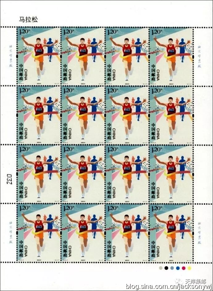 邮票第一图通过描绘马拉松运动员撞线的瞬间动态形象和背后欢呼的观赛人群,配合全程马拉松的里程数,突出了“挑战自我、超越极限、坚韧不拔、永不放弃”的马拉松精神。