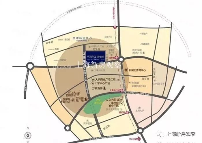 从区域地图上看,静安府南有大宁灵石公园、大宁国际广场以及在建的大宁久光百货,北有规划中的全球科创中心,西有环上大影视园区和建设中的河滨体育公园,东有新体育中心,不论从商业、人文以及环境上来看,大宁板块区域规划都比较完善,也是“十三五”期间上海重点发展的新静安的一部分。