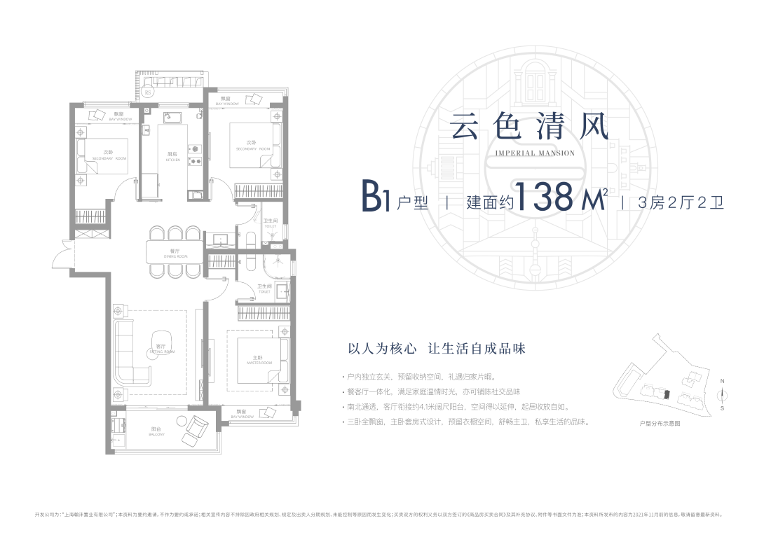杨浦内中环12号线旁「杨浦滨江壹号」推约95-105㎡3房,户型图曝光