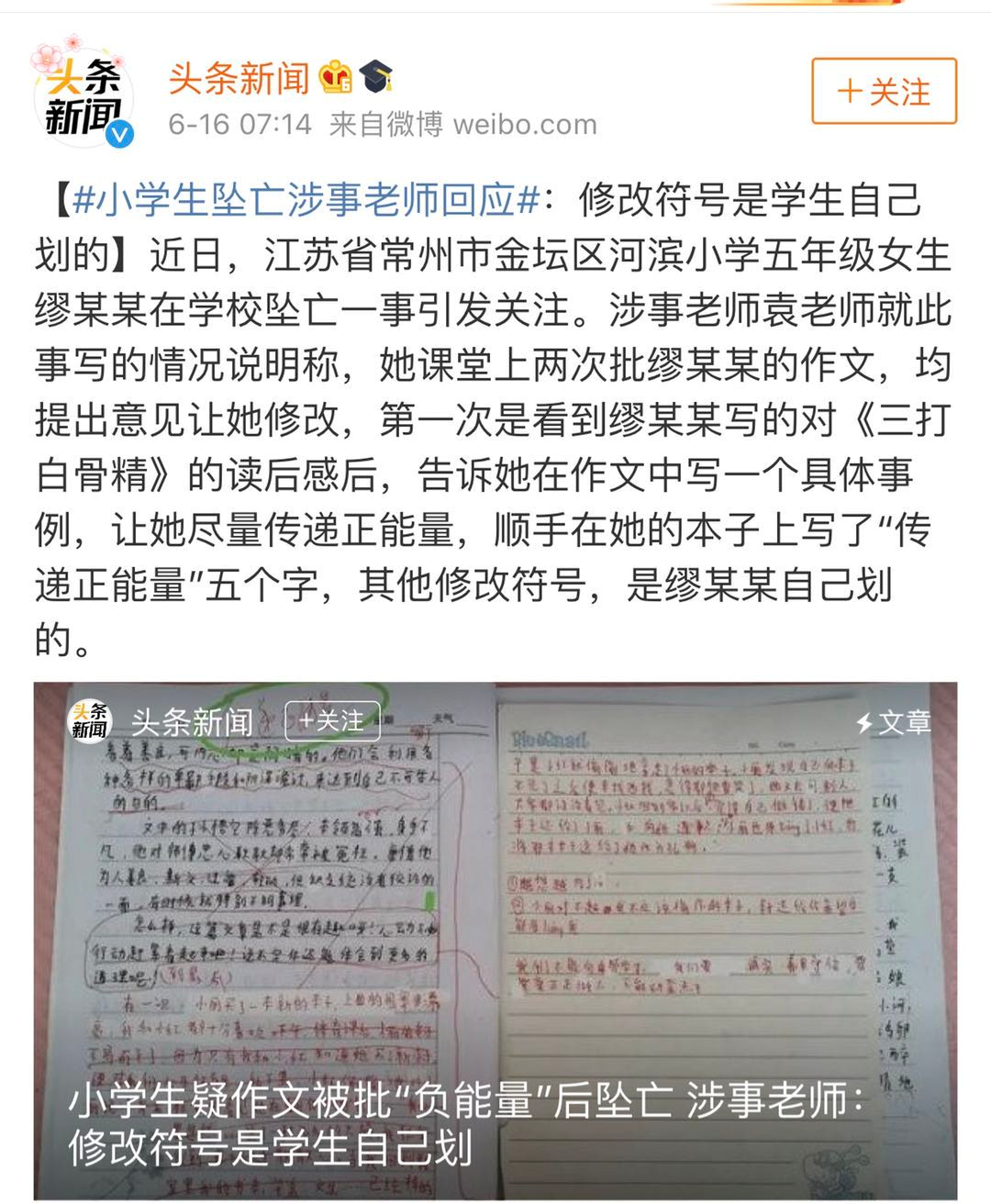 如果你去翻下评论的话,很多人会说老师其实没错,学校其实没错,家长也没错,就是小孩子太脆弱,这种话。