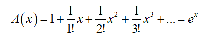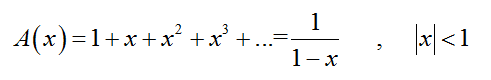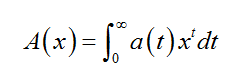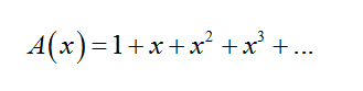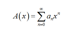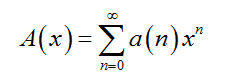 把a(n)看成是作为幂级数系数的一组离散函数,上式就可以看作是函数A(x)的构造过程,即,只要输入一个{a(0),a(1),a(2),⋯}序列,就可以输出一个A(x),其中,x 是输出函数A(x)的自变量。