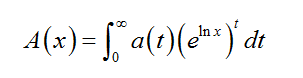 假设让这个求和变得连续而不是离散,即不是让变量n =0,1,2,3…,另外定义一个变量t,并且0≤t<∞,即t可以为[0,∞)中的任意实数。