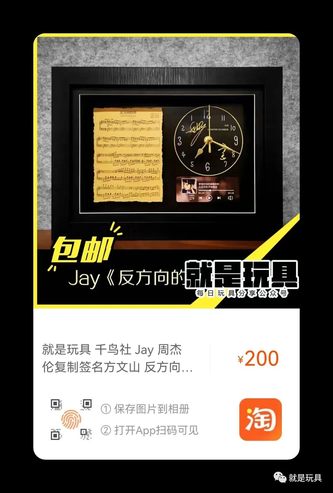 千鸟社这款周杰伦《反方向的钟》外框尺寸25×34厘米,限量118体。售价398元包邮,预计最快9月上旬出货。复制下方口令打开手机淘宝,在“就是玩具”的淘宝店铺可以购买(8月22日截单)