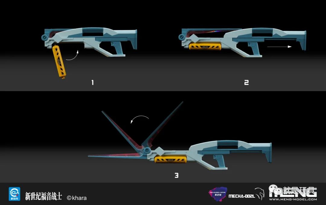 二号机的超电磁弓枪也可以折叠/展开,并且为其安装弩箭