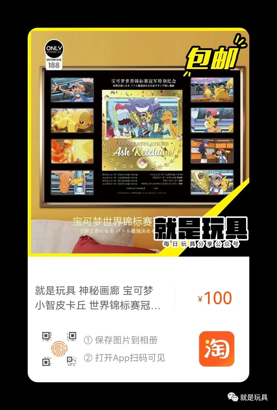 神秘画廊这幅《宝可梦世界锦标赛冠军纪念画》尺寸40x60厘米,限量仅188幅,售价238元包邮。最快下月就出货,复制下方链接打开手机淘宝,在“就是玩具”的淘宝店铺可以购买(11月20日截单)