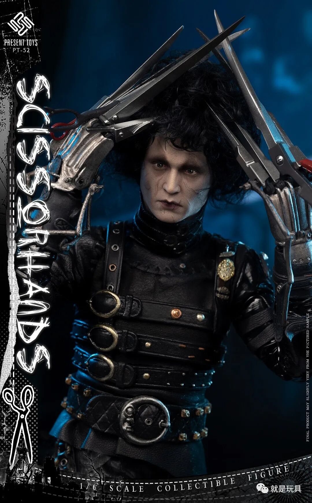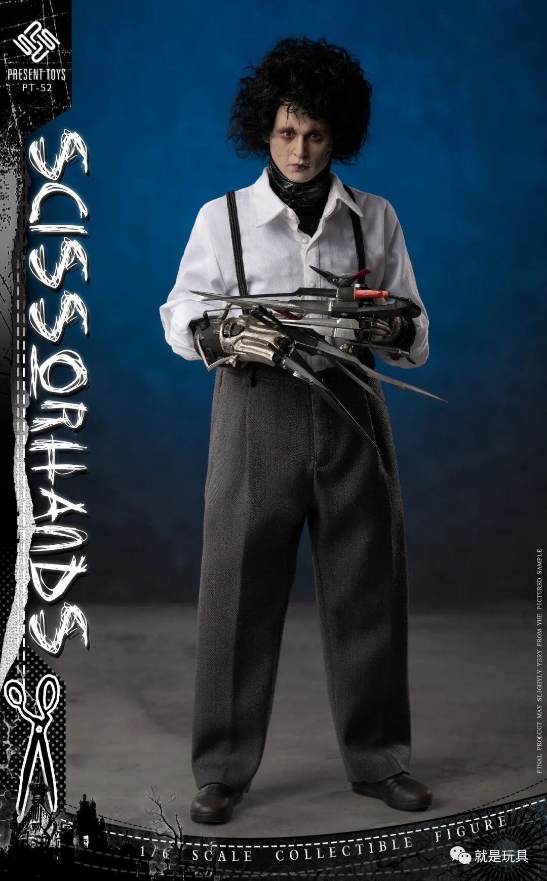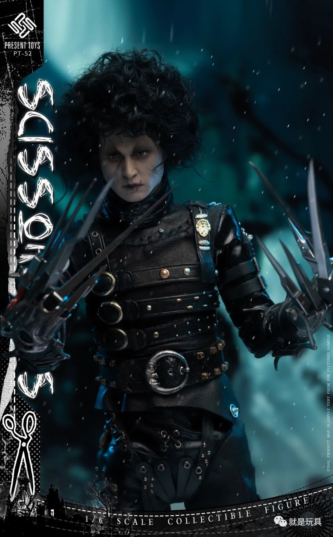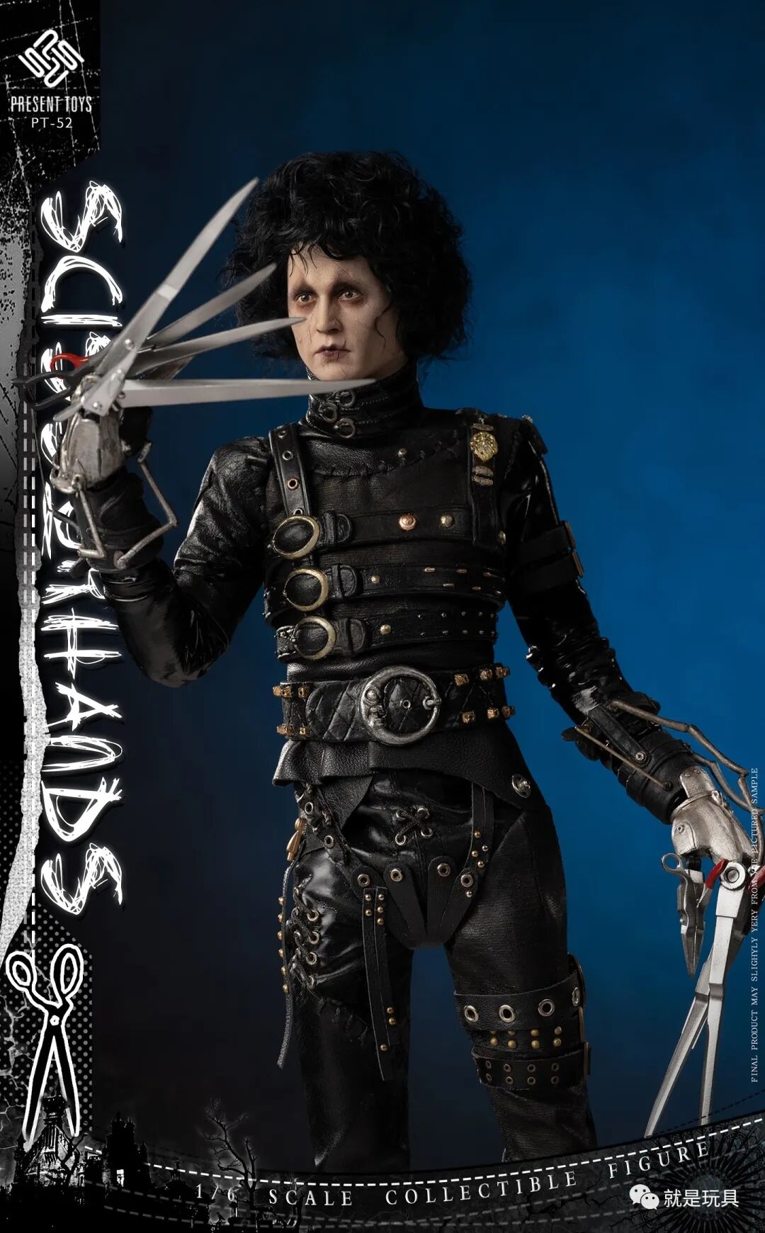 PRESENT TOYS在推出了《终结者2》T-800后,今天又开订了一款《剪刀手爱德华》1/6新品。采用植发头雕+真皮皮衣,并且有两套造型可以替换