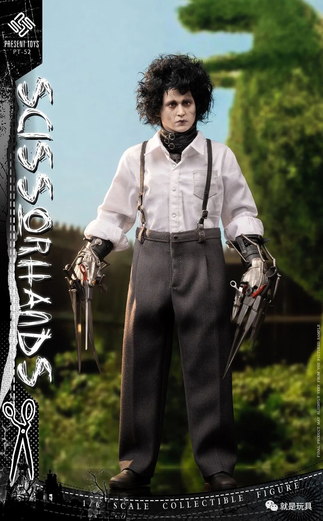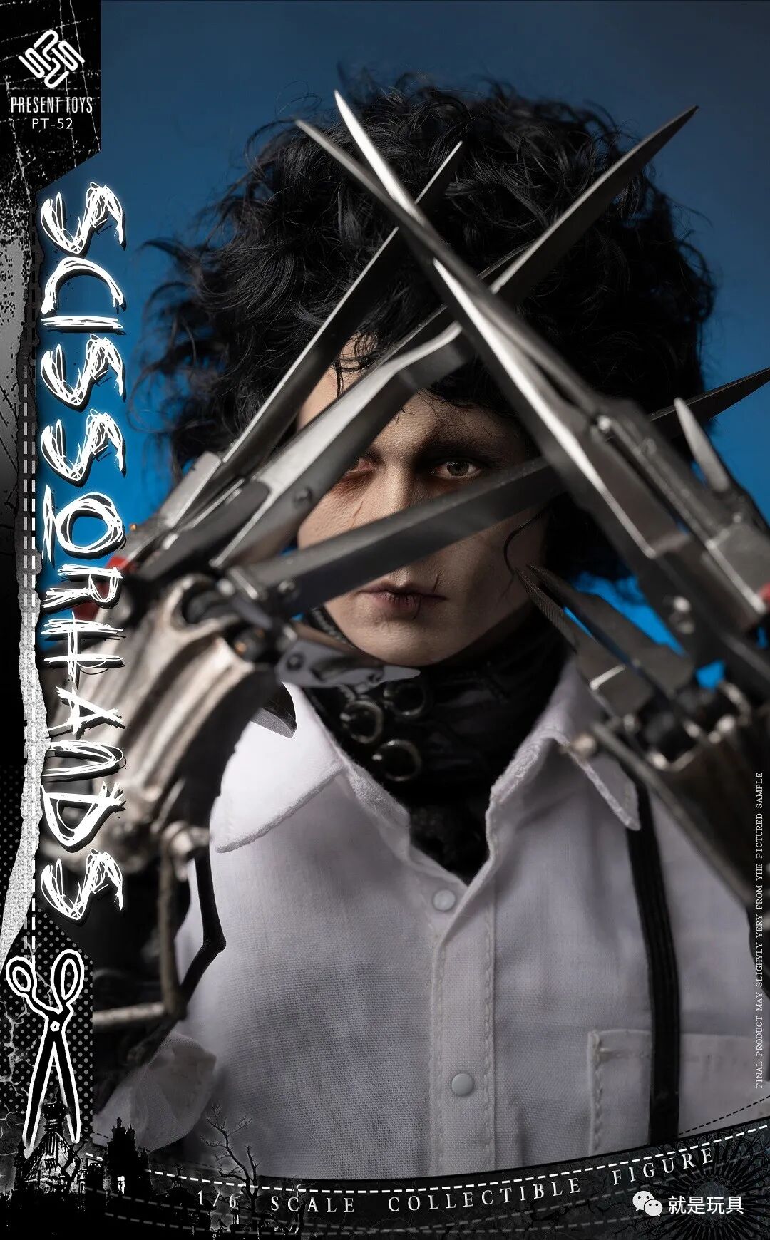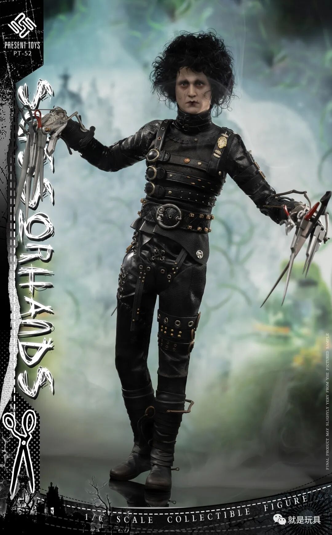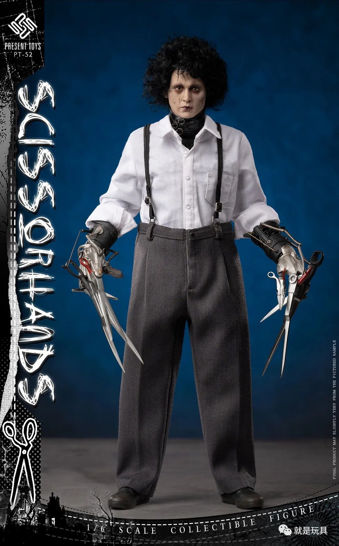 PRESENT TOYS在推出了《终结者2》T-800后,今天又开订了一款《剪刀手爱德华》1/6新品。采用植发头雕+真皮皮衣,并且有两套造型可以替换