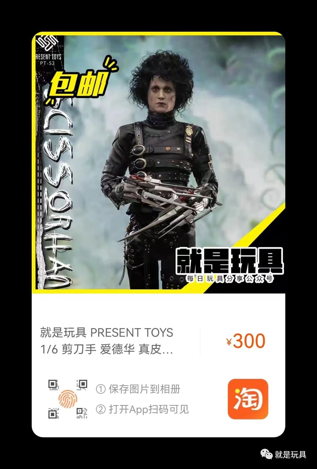 PRESENT TOYS这款1/6《剪刀手爱德华》售价1438元包邮,预计最快明年年底出货。复制下方链接打开手机淘宝,在“就是玩具”的淘宝店铺可以购买(12月14日截单)