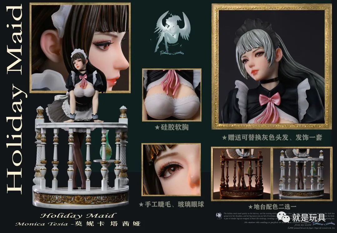 北极星工作室今天开订了一款原创设计的“假日女仆”莫妮卡.塔茜娅1/4雕像,采用全PU材质制作+玻璃眼+手工植毛睫毛,而且欧派还是硅胶软质的!