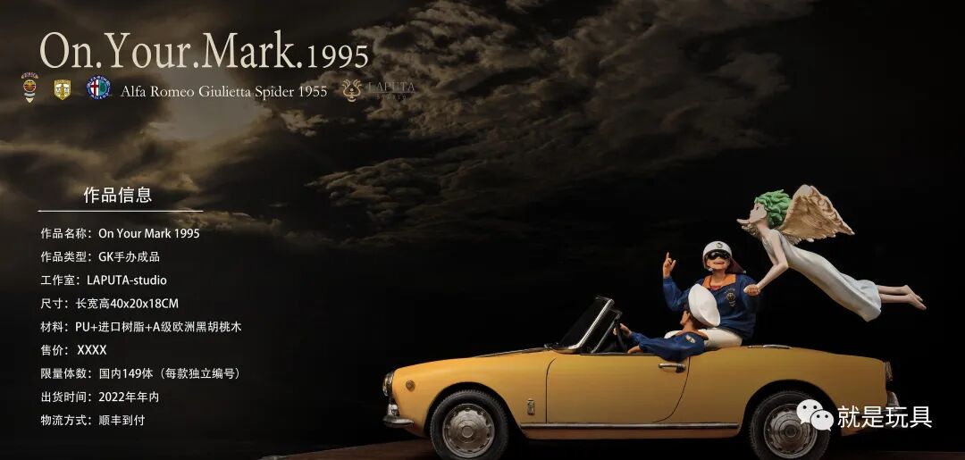 专注于宫崎骏系列的精品工作室LAPUTA今天开订了一款宫崎骏于1995年为日本知名流行乐队“恰克与飞鸟”制作的MV动画短片《ON YOUR MARK》雕像,洋溢着公路片般温暖与自由的经典造型自带BGM,限量发售仅149体