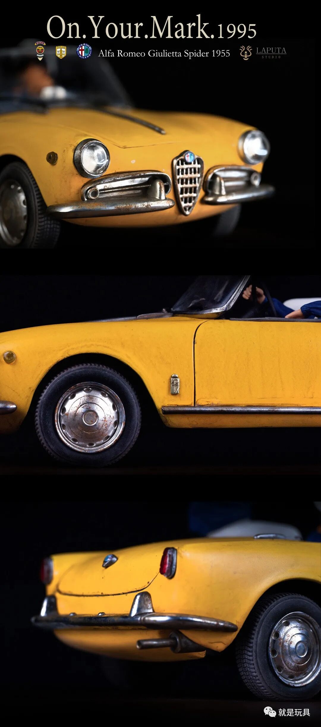 《ON YOUR MARK》中这辆黄色阿尔法罗密欧敞篷车为1955年款Giulietta Spider,流线型的圆润车身搭配明亮艳丽的配色,造型优雅复古中不乏浪漫气息,与MV中传递出的氛围非常契合
