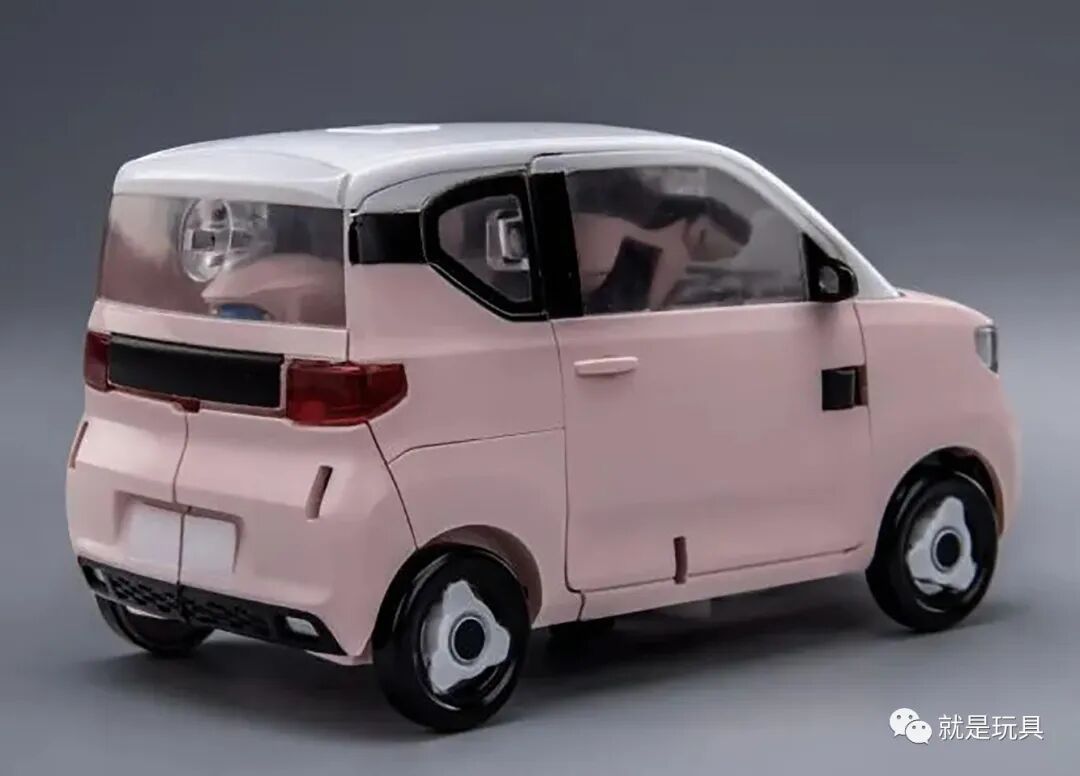 小巧的身材搭配粉嫩配色,随便摆摆造型都很显可爱!当然这款作品的最大亮点肯定还是宏光MINIEV的汽车形态了
