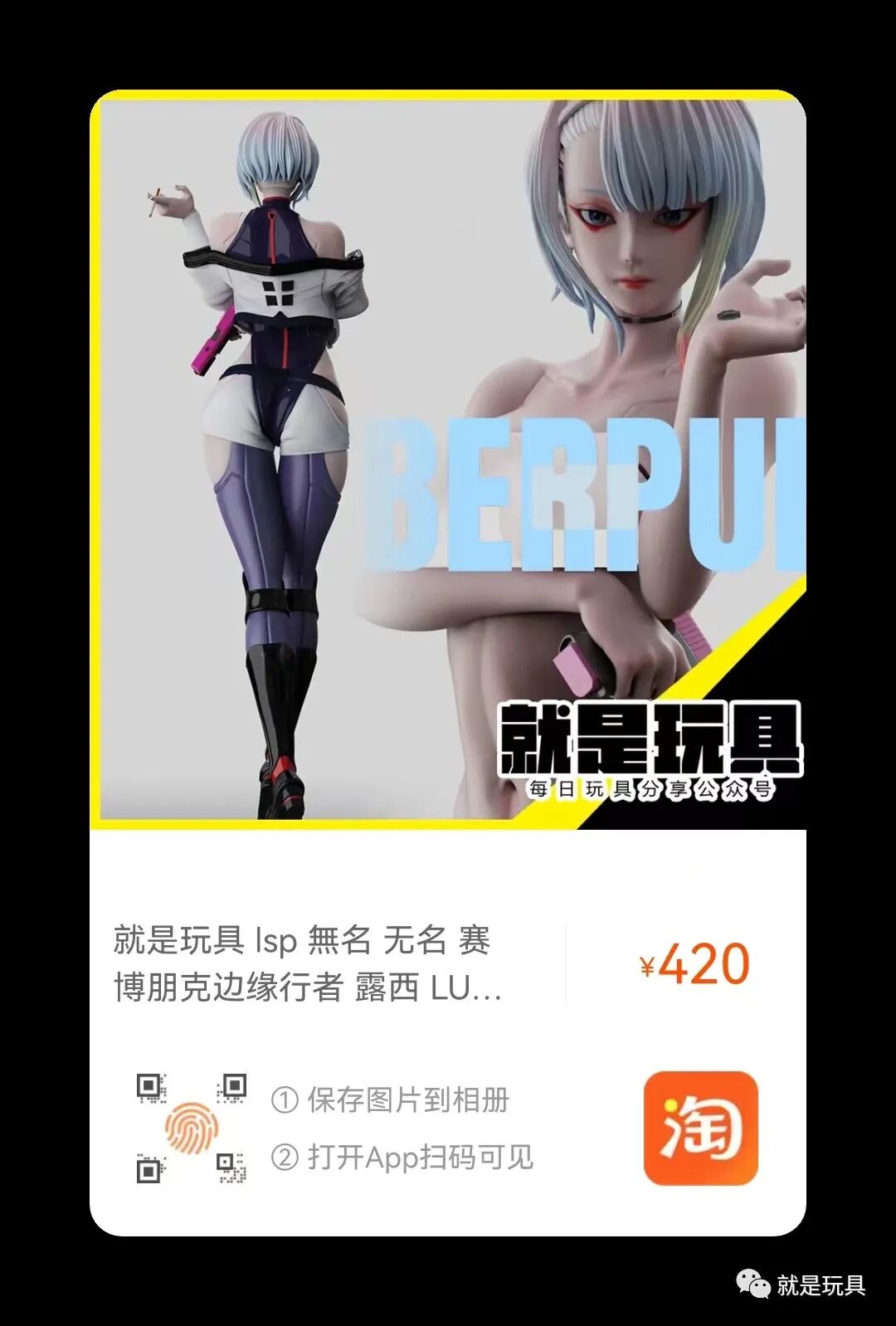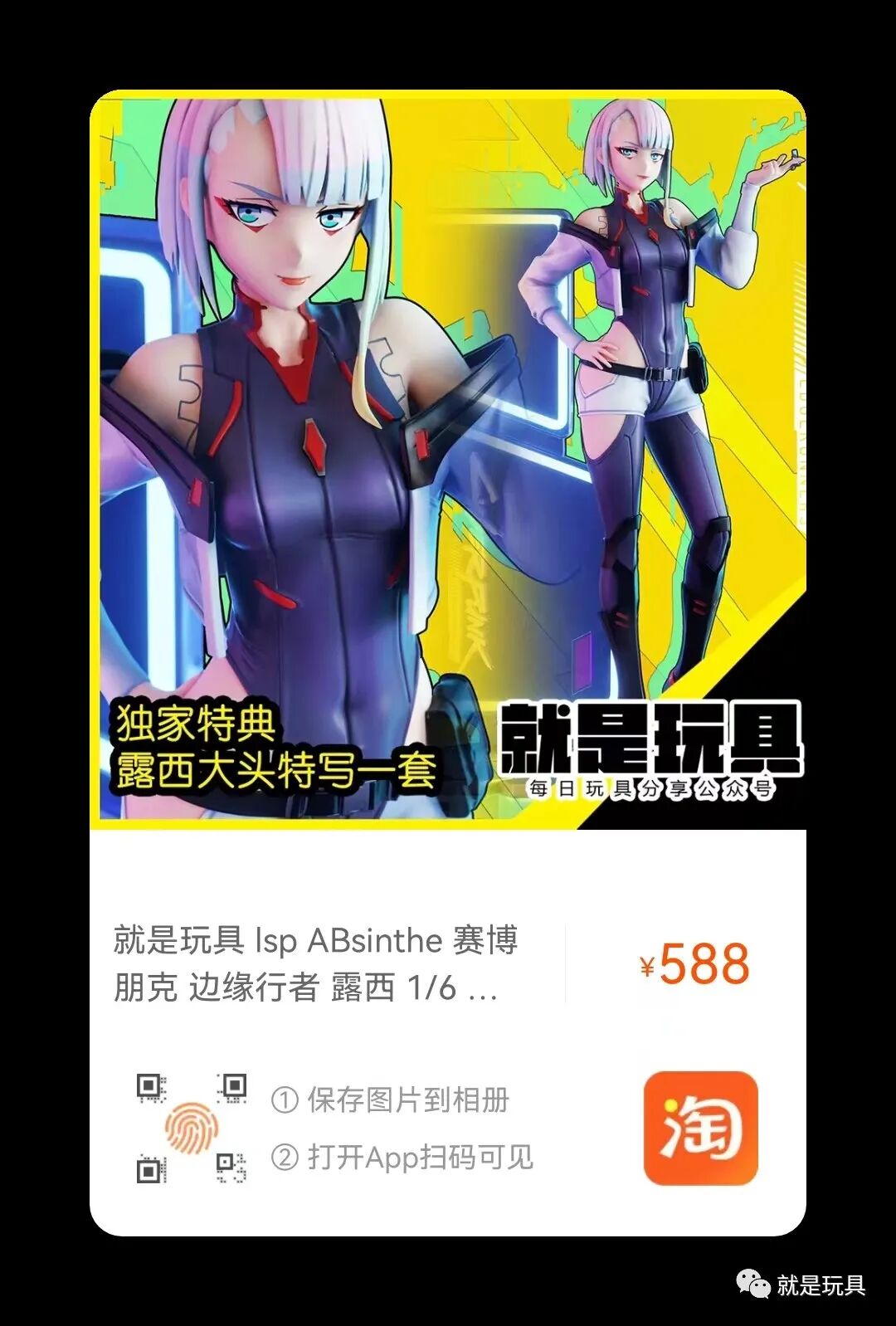 ABsinthe这款《赛博朋克·边缘行者》露西为1/6比例高31厘米,普通版售价1288元,高配版为1588元(可双摆)限量188体,预计明年2季度出货。复制下方口令打开手机淘宝,在“就是玩具”的淘宝店铺可以购买(随时截单)