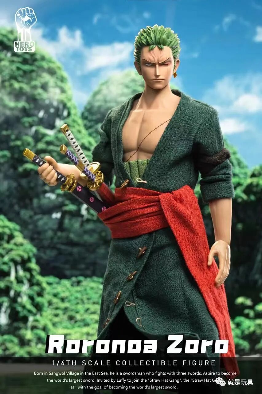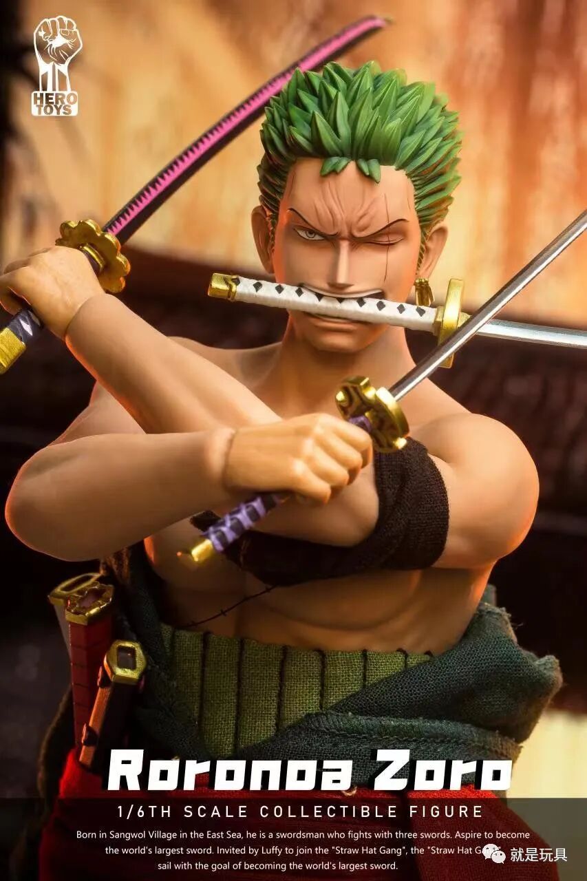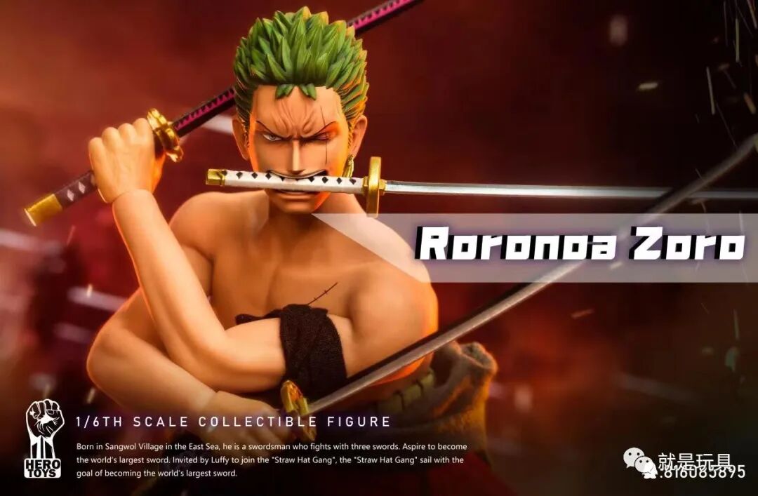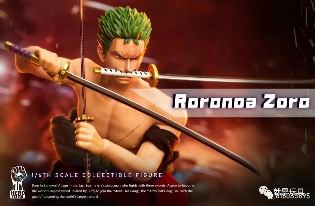 HERO TOYS今天开订了一款1/6《海贼王》可动索隆,采用钢骨包胶素体+双头雕+双表情配置,还配有4把合金刀!