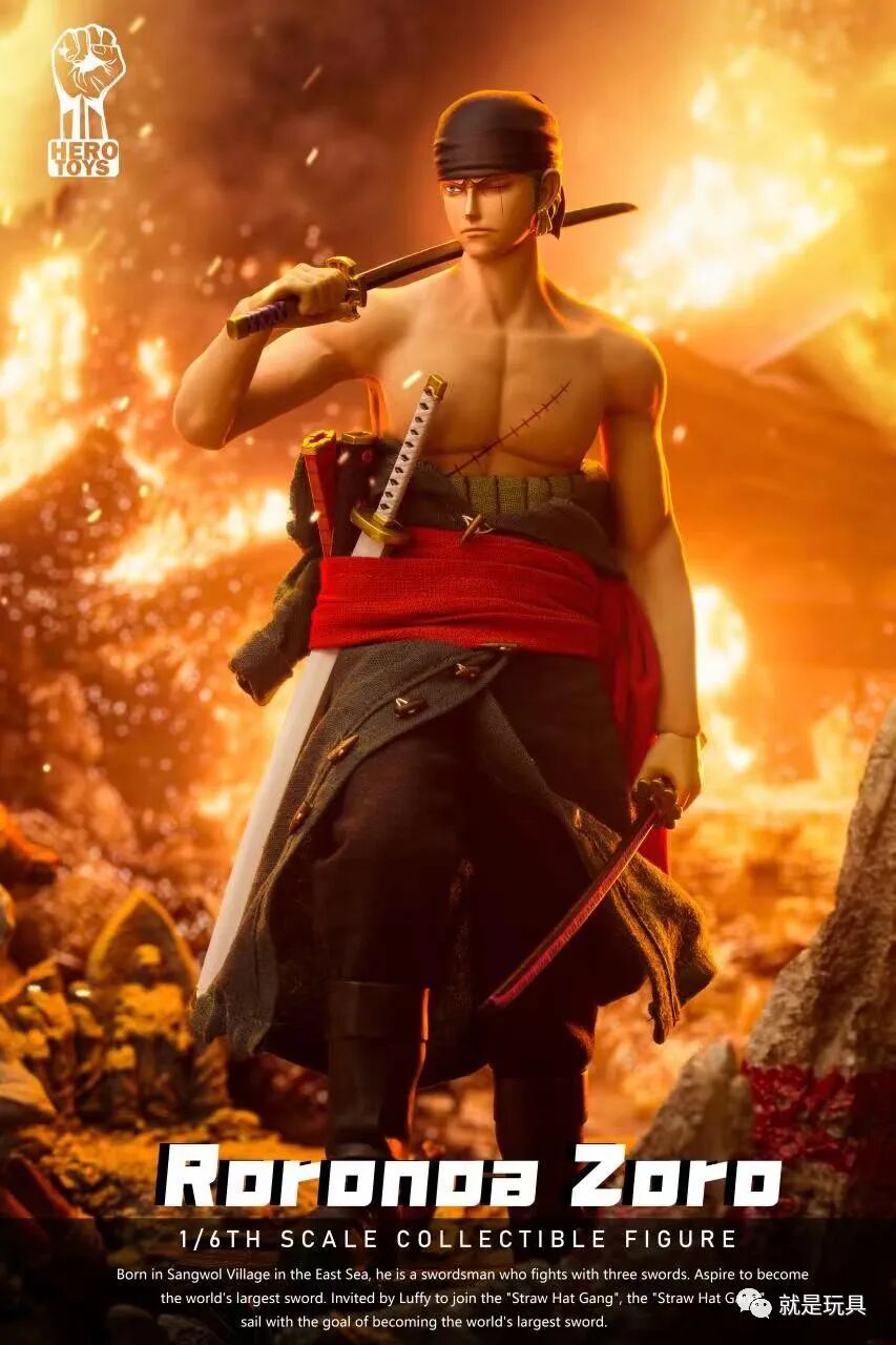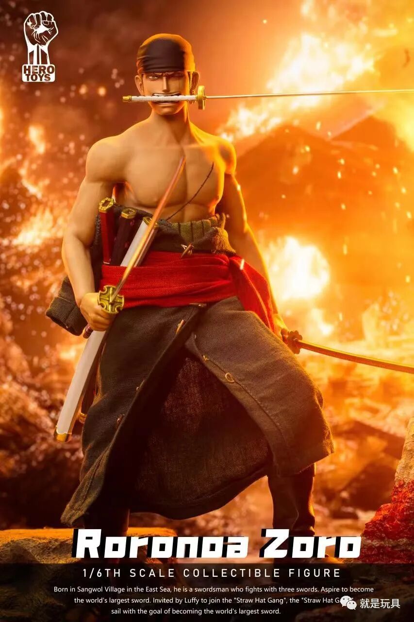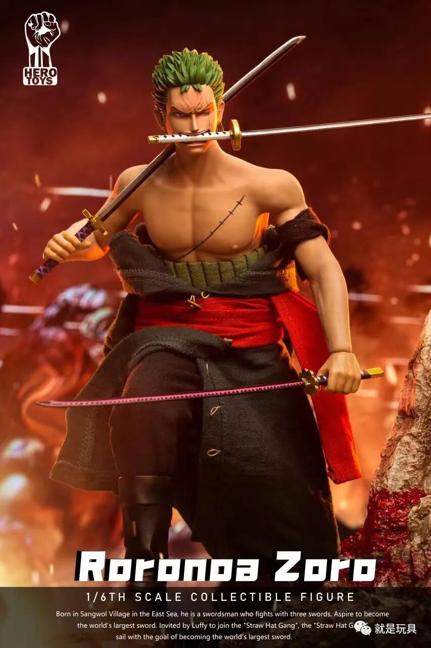 HERO TOYS今天开订了一款1/6《海贼王》可动索隆,采用钢骨包胶素体+双头雕+双表情配置,还配有4把合金刀!