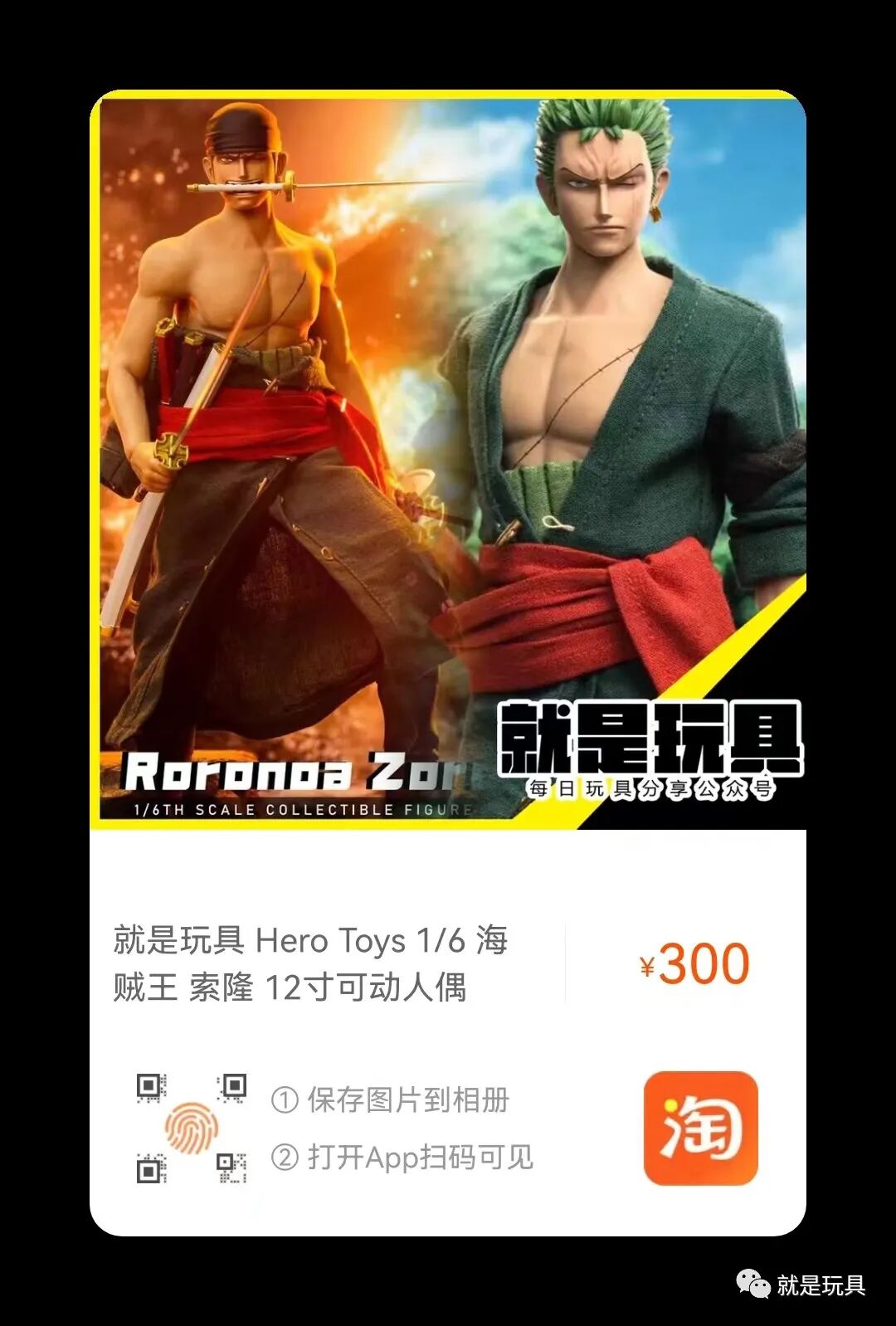 HERO TOYS这款1/6《海贼王》可动索隆售价980元,预计明年2季度出货。复制下方口令打开手机淘宝,在“就是玩具”的淘宝店铺可以购买(随时截单)