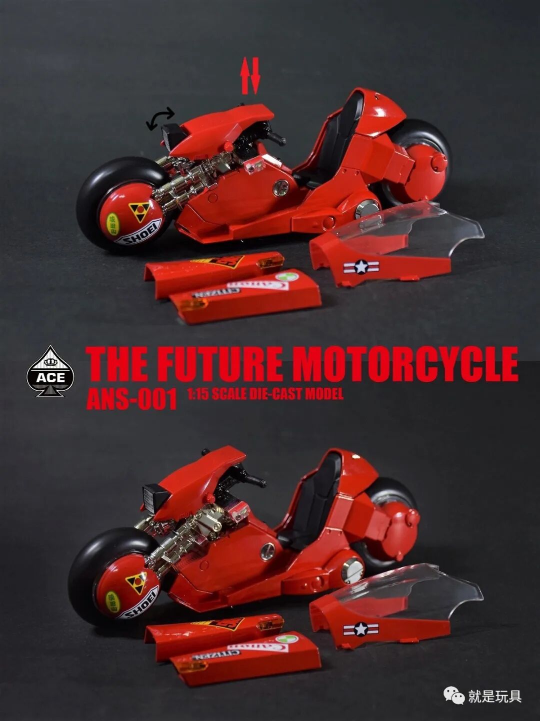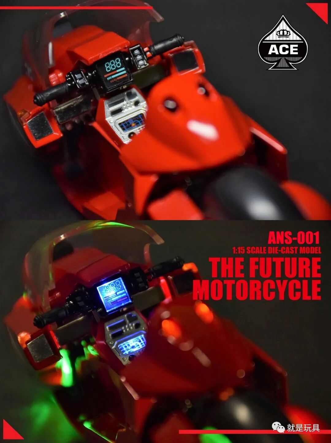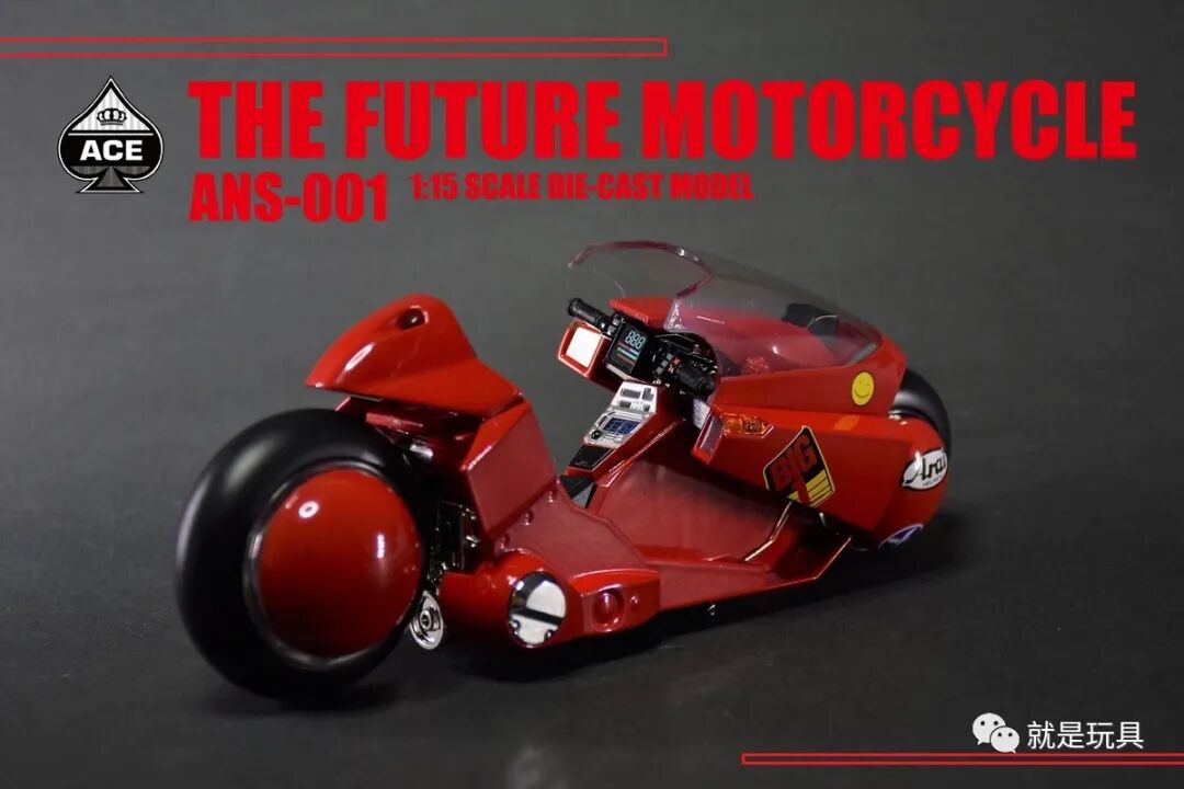 ACE TOYZ明天截单一款《阿基拉》合金摩托机车,有红色和黑色两款可选,车身光效点亮后科幻效果十足!