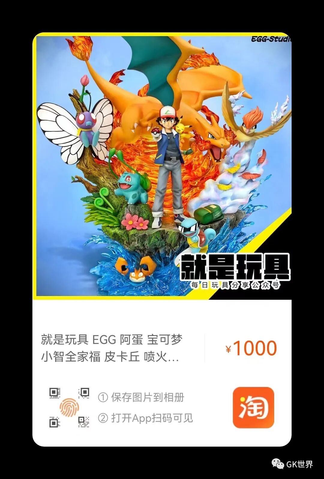 EGG阿蛋这款宝可梦雕像“小智全家福”高41.5宽39深34厘米,限量230体,售价2499元。预计明年4-5月出货,复制下方链接打开手机淘宝,在“就是玩具”的淘宝店铺可以购买(随时截单)