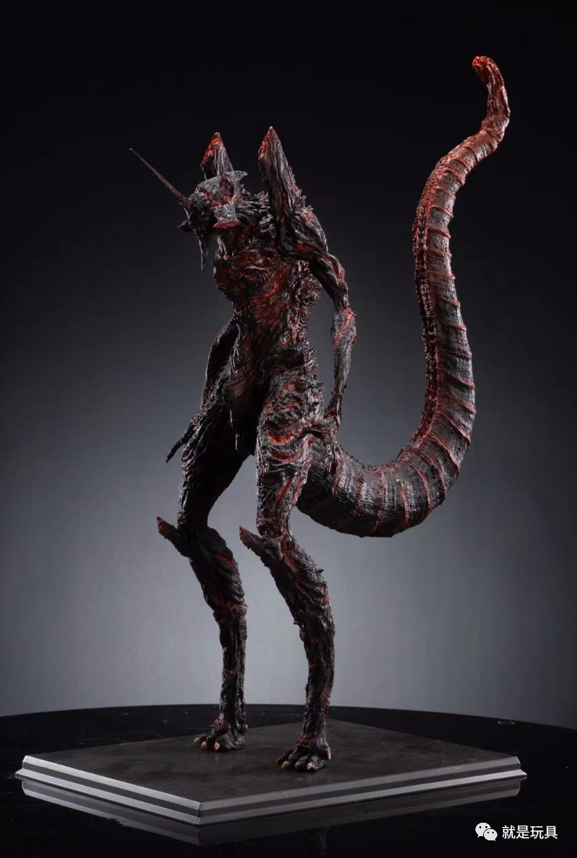 这款独角兽哥斯拉高40厘米,好像熔岩冷却凝固般的表面肌理非常颠覆原设,身后巨大的尾巴和身体各处的紫水晶结晶好像一头来自远古文明的庞然巨兽