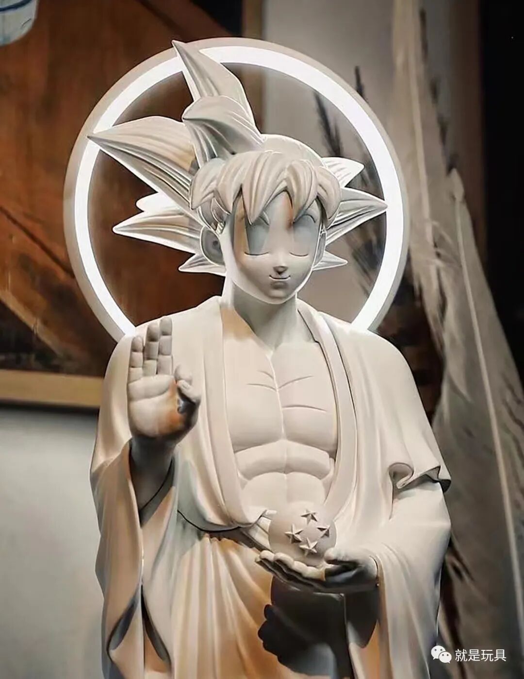 这款《真自在悟空》高44厘米,纯白无暇的“佛系”服装搭配一脸恬淡表情与身后光环,实在很难让人把这件作品与《龙珠》中的武痴悟空联系在一起——不过正是这种反差感为作品赋予了与众不同的独特魅力