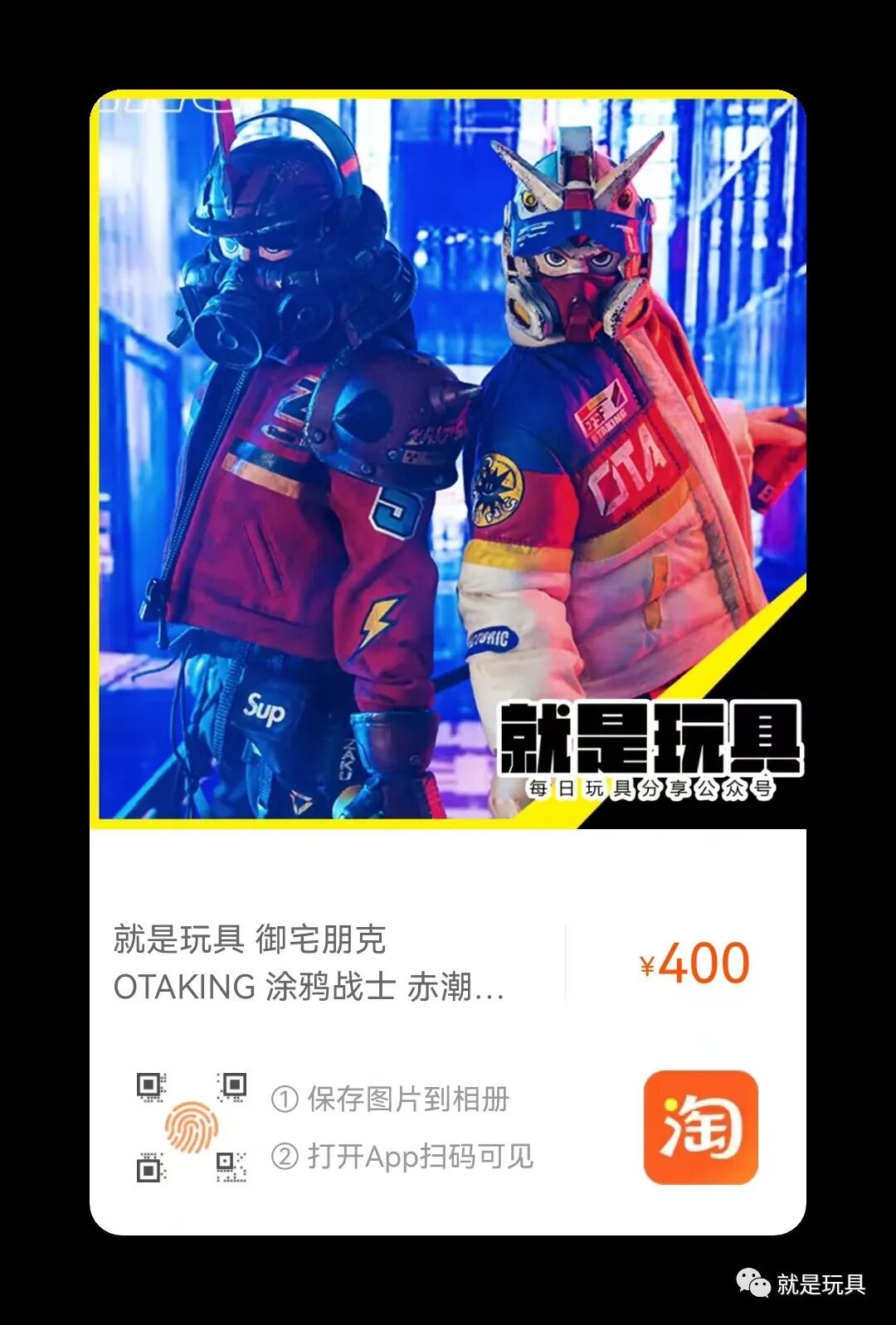 御宅朋克OTAKING这套1/6涂鸦战士&赤潮武士限量各499体,售价998元/个,双入送限量版画一幅。预计明年2季度出货,复制下方链接打开手机淘宝,在“就是玩具”的淘宝店铺可以购买(随时截单)