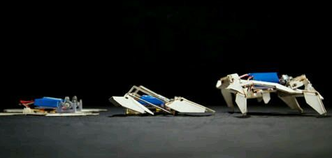 其实早在2014年,美国哈佛大学科学家就以折纸为灵感,研究出一款可变形的折纸机器人,通电后就可以从扁平状态变成四条腿站立的机器人,无需人类帮助即可行走和转弯,可被用于进入灾区倒塌建筑中执行搜救任务。