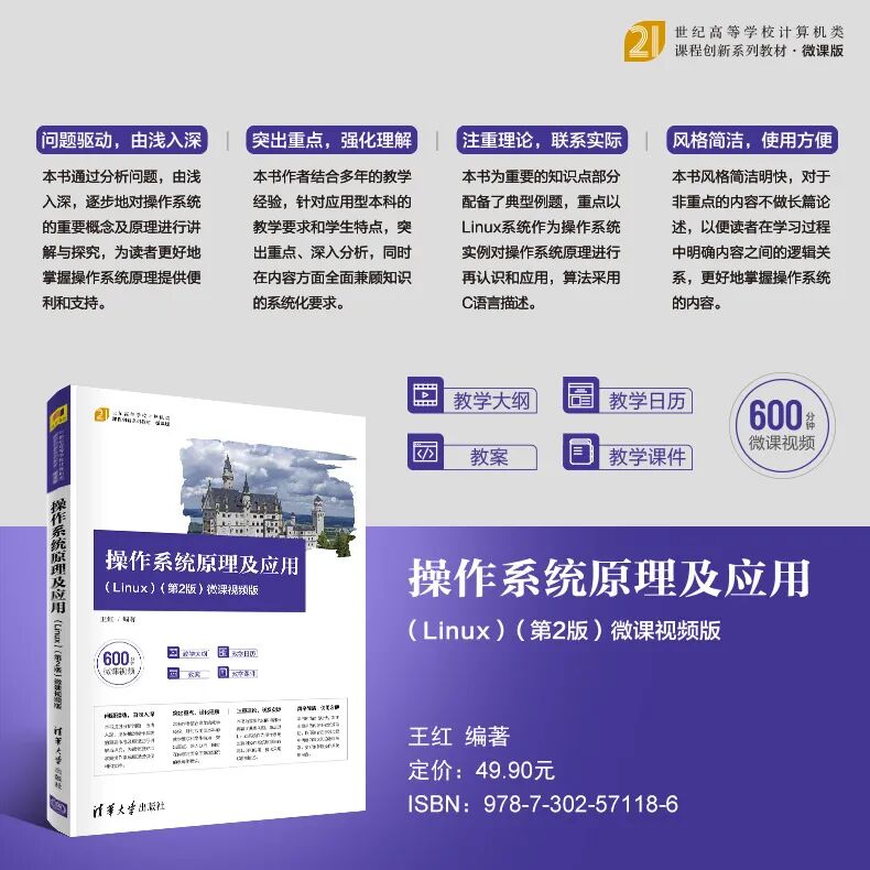 (3)注重理论,联系实际。操作系统课程的另一个特点是理论性强,对于一些概念和原理,学生在学习过程中不太容易理解。本书在重要的知识点部分都给出了典型例题,便于老师教学和同学对知识的掌握;本书以Linux系统作为操作系统实例对操作系统原理进行再认识和应用,算法采用C语言描述。
