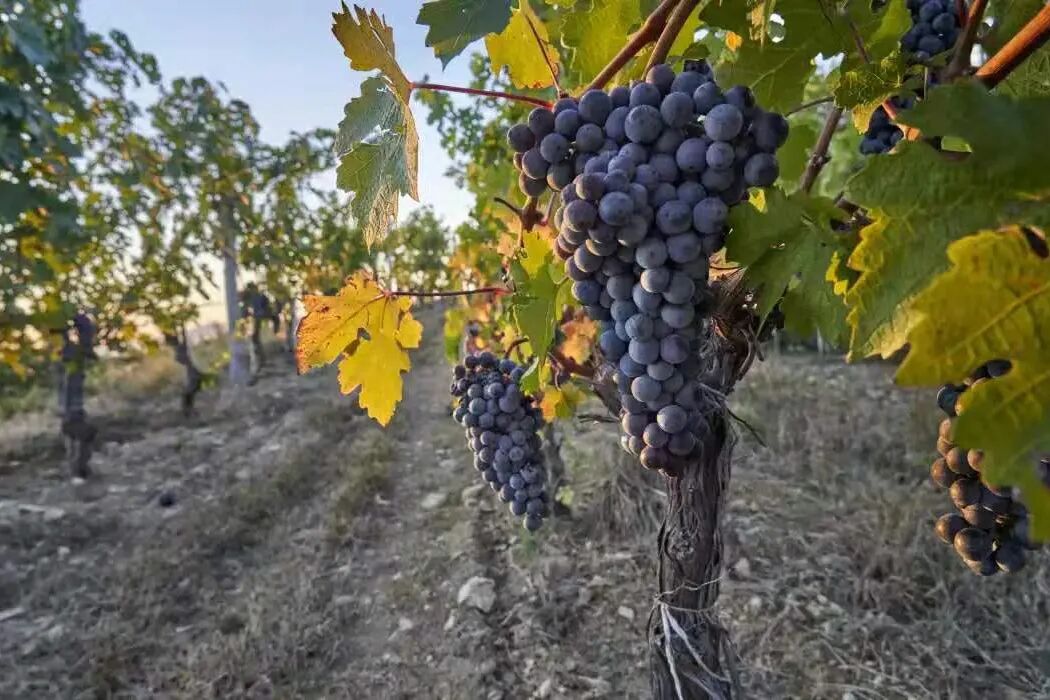 逃牛岭的葡萄田里种植着包括赤霞珠、品丽珠、马瑟兰、小维而多、霞多丽、长相思等19个葡萄品种和品系。