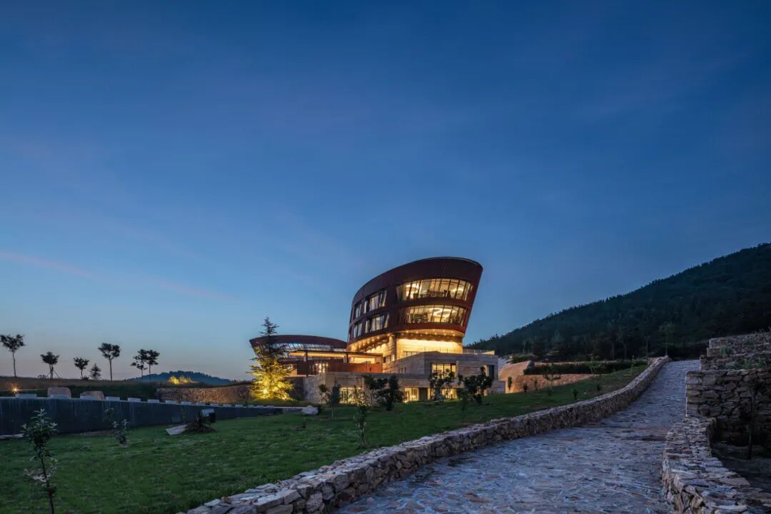 酒庄的主体建筑外形十分独特,两栋连体的建筑像是两只冲天的牛角,风格新派且富有寓意。