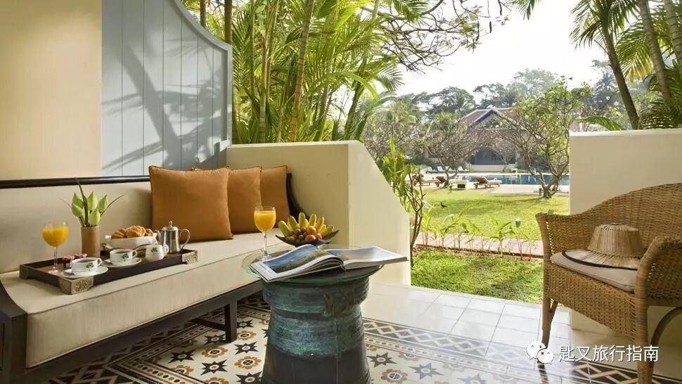 琅勃拉邦的这间安缦由一组白墙红顶的法式殖民建筑组成,规整的花园将其映衬得楚楚动人。