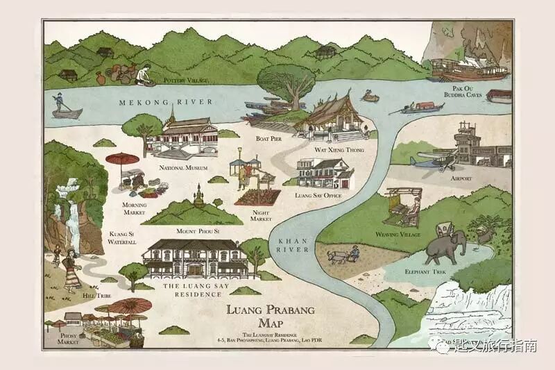 琅勃拉邦被康河、湄公河和大片绿谷环绕。其独特之处不仅源于老挝传统佛学文化根基,更在于受法国殖民影响、混合着越南、欧式、中式的城市构造和气韵。