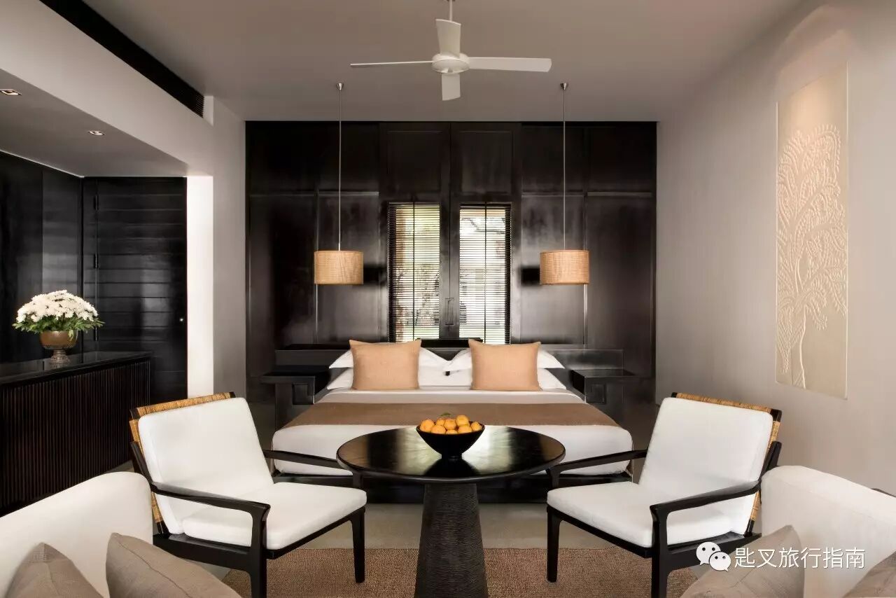 这是全球众多安缦中最精巧、静美的作品,酒店的公共空间和客舍环绕规整的草坪和镜面弧形泳池徐徐展开。每间客舍都由Kerry Hill加持,里边用黑、白和利落的直线条贯彻Hill的“简即为美”哲学。