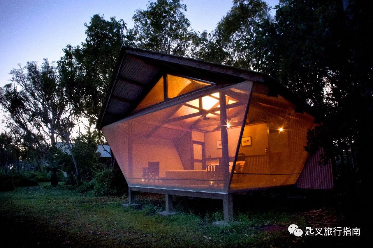 而澳洲野奢的巅峰之作就藏在巴姆鲁平原, 每间奢华营帐都如置入自然场景的灯笼, 让人以“光源”姿态赏鉴自然。这里的Safari体验足以和非洲媲美, 而且还带有独特的澳洲腔。不管是入夜打开灯照亮周围的自然场景、还是关上灯欣赏漫天星辰、抑或清晨被各种漂亮鸟类的鸣叫唤醒, 都是这款澳洲系Safari居所的迷人之处。