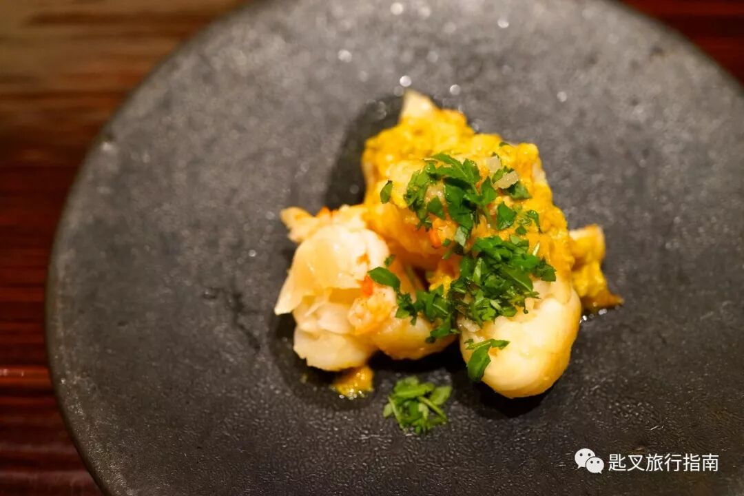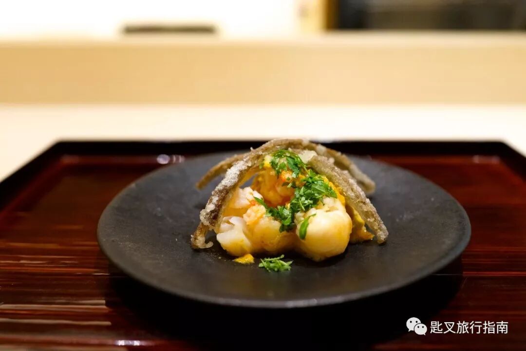 这里的伊势大虾, 虾肉用火程度极其精准, 里面还是水灵鲜嫩的, 上面炒鸡蛋一样的东西是虾黄, 牛蒡炸得恰到好处, 比柊家那个干巴巴的崛川牛蒡高明了不知多少。