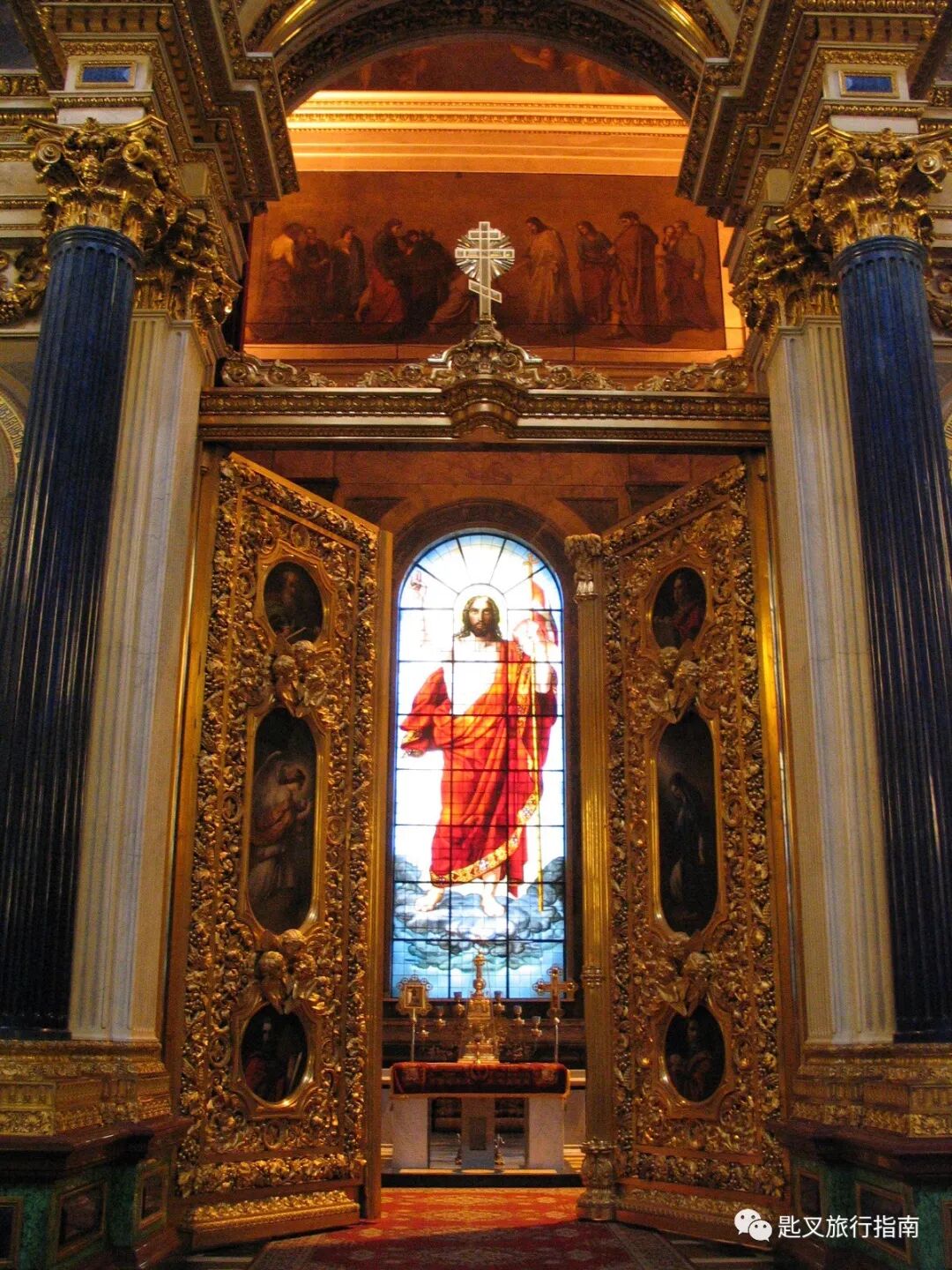 圣以撒不仅规模是全圣彼得堡之最, 内饰的奢华程度更是令人叹为观止。巨幅耶稣的画像被附在玻璃上, 在推门的瞬间光芒笼罩, 无比神圣。