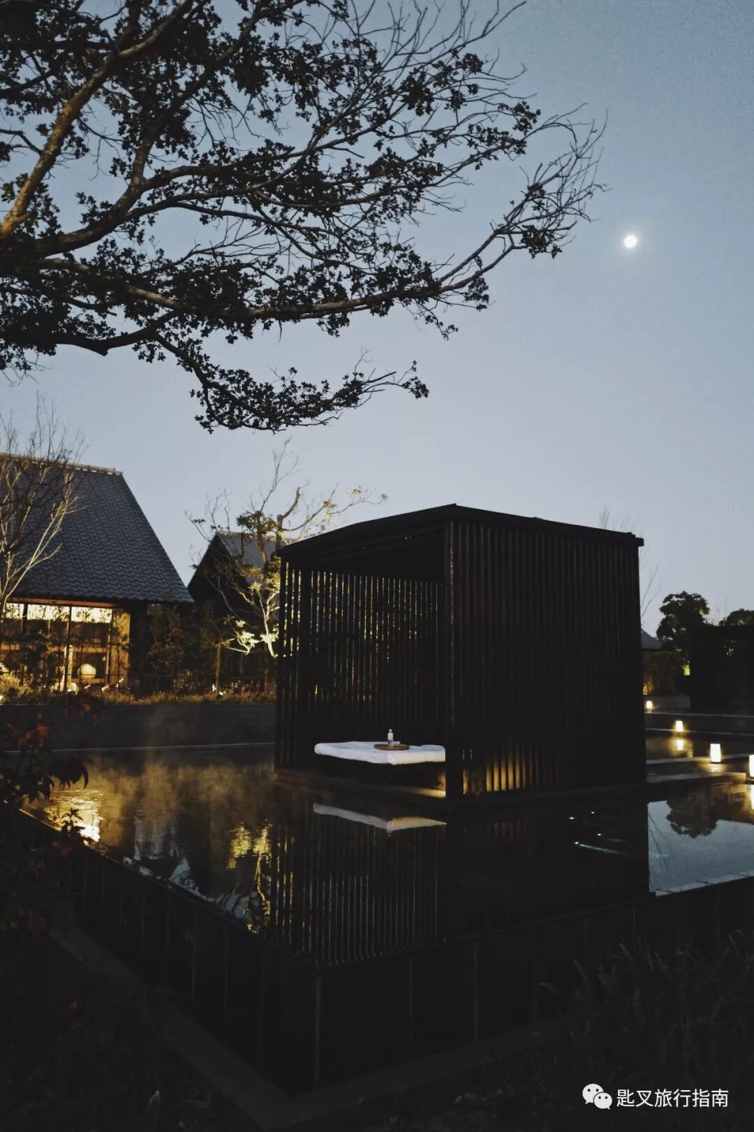 公共汤每天早晨7点到晚上9点开放,住客随时可以过来享受。含盐矿物泉水充斥温泉之内,水滑润肤,养生宜人。常泡能够舒缓肌肉、关节与神经疼痛,帮助消除疲劳、加速伤口与烧伤愈合以及治疗皮肤疾病等。洗凝脂、凝神思、焕活力,在朴质的古树和静谧的氛围里,为身心补给。入住当晚恰好是月圆之夜,此情此景,所谓“吸收天地之精华”不过如此吧!