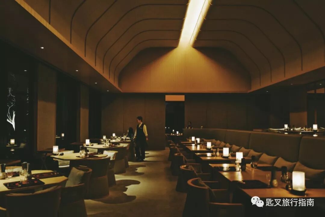 餐厅面朝大海,梯形拱顶颇有几分皇室气场