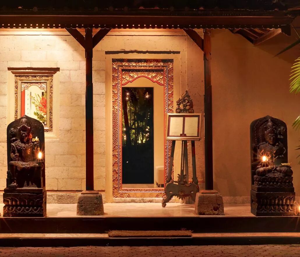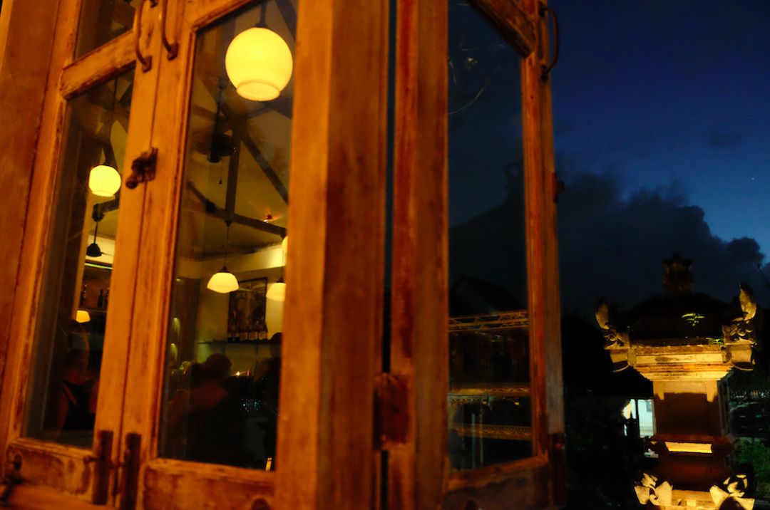 餐厅从门面看具有典型的巴厘岛当地风格,传统元素十分鲜明。但意想不到的是,深处烛火摇曳,竟是一片神秘浪漫的露天花园。