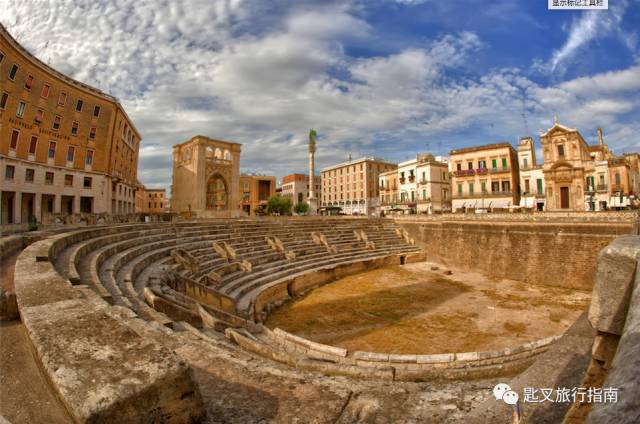 同样历史悠久的莱切是普利亚重要的农业中心,尤其盛产橄榄油和葡萄酒。这里拥有许多重要的巴洛克风格古迹,又被称为“南方的佛罗伦萨”。建于1353年的圣十字圣殿,诺曼风格的圣尼科洛和卡塔尔多教堂,建于1667年的典型意大利巴洛克建筑圣马特奥教堂,以及古老的罗马圆形竞技场,都是莱切重要的地标建筑。