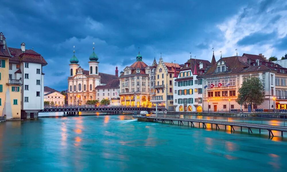 卢塞恩老城保留了中世纪的和谐美与生命力,色彩缤纷的旧城区的北面是一座14世纪的城墙。 大仲马口中“世界最美的蚌壳中的明珠”,形容的就是静谧的湖泊,冬日里巍峨连绵的雪山。